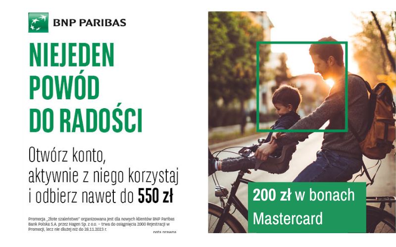 Historyczny rekord! 550 zł po otwarciu konta osobistego w BNP Paribas + 200 zł w programie Mastercard Bezcenne Chwile